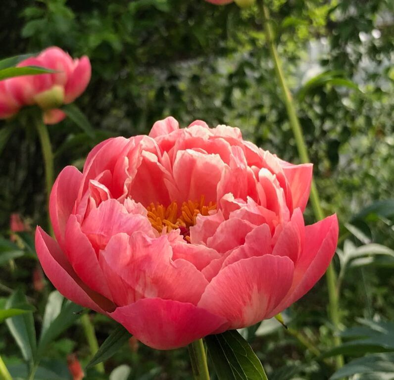 Пион Корал шарм — компактное травянистое растение высотой 0,8-1,1 метра. Побеги хорошо развитые, прямостоячие. Листья типичной для пионов формы — тройчатые с прожилками. Цвет листовой пластины темно-зеленый, поверхность глянцевая. Главная привлекательность сорта в окраске и форме соцветий. Они довольно крупные — диаметром 16-21 см. По форме чашеобразные и полумахровые. Цвет лепестков в процессе роспуска бутона меняется от темно-кораллового до светло-лососевого. Место посадки Для посадки пионов понадобится защищенное от ветров место с хорошей освещенностью. Сорта светлой окраски, а также пионы с простыми и полумахровыми цветками можно посадить на частично затеняемом участке, это продлит цветение и защитит цветы от выгорания. Почва для посадки Залог успешного цветения пиона в будущем — это подготовка почвы! 1. Подготовка ямы — 70*70 см на скудных песчанистых и торфянистых почвах — 50*50 см на плодородных, окультуренных почвах. ХРАНЕНИЕ ДО ПОСАДКИ: После получения посылки, рекомендуем вскрыть пакет и осмотреть корневище. Почки должны быть плотные и розового цвета. Так же уделите внимание самому корневищу, все сомнительные, потемневшие, сморщенные части удалите, а места среза обработайте зеленкой или залой. Если почки еще не тронулись в рост, а высаживать в открытый почву рано, советуем Вам хранить корневище в холодильнике, обязательно оставляя его в пакете с торфяной смесью или в коробке под снегом. Если почки успели раскрыться это не критично, сохранить до посадки их так же возможно, высадите корень пиона в большой просторный горшок или в любую другую ёмкость.